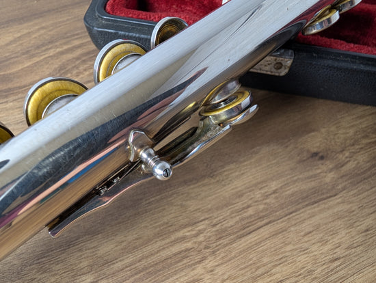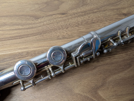 This pre-owned Yamaha YFL-211S is a carefully selected student–intermediate flute from the Japanese market. The 200-series Yamaha flutes are known for their stable intonation, smooth response, and ease of control, making them a solid choice for beginners and advancing players in school bands and wind ensembles.
