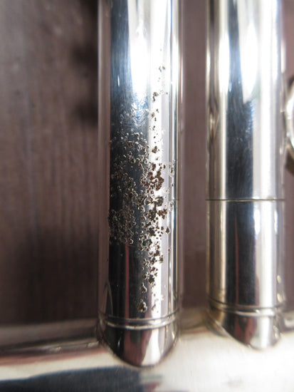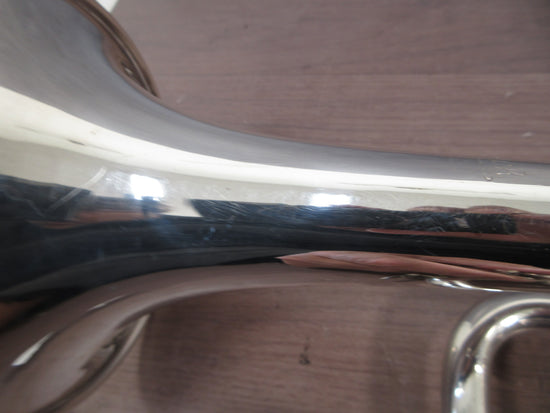 There is a dent in the bell, visible as a cosmetic sign of use, but there are no problems with the pistons or slides. The instrument responds reliably, with smooth action and a comfortable blow in everyday playing situations.