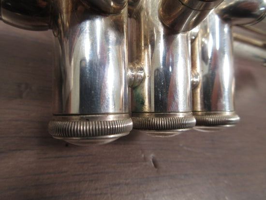 There are some scratches on the valve casing from normal use, but there are no problems with the pistons or slides. The instrument responds reliably, with smooth action and comfortable blow for everyday playing situations.